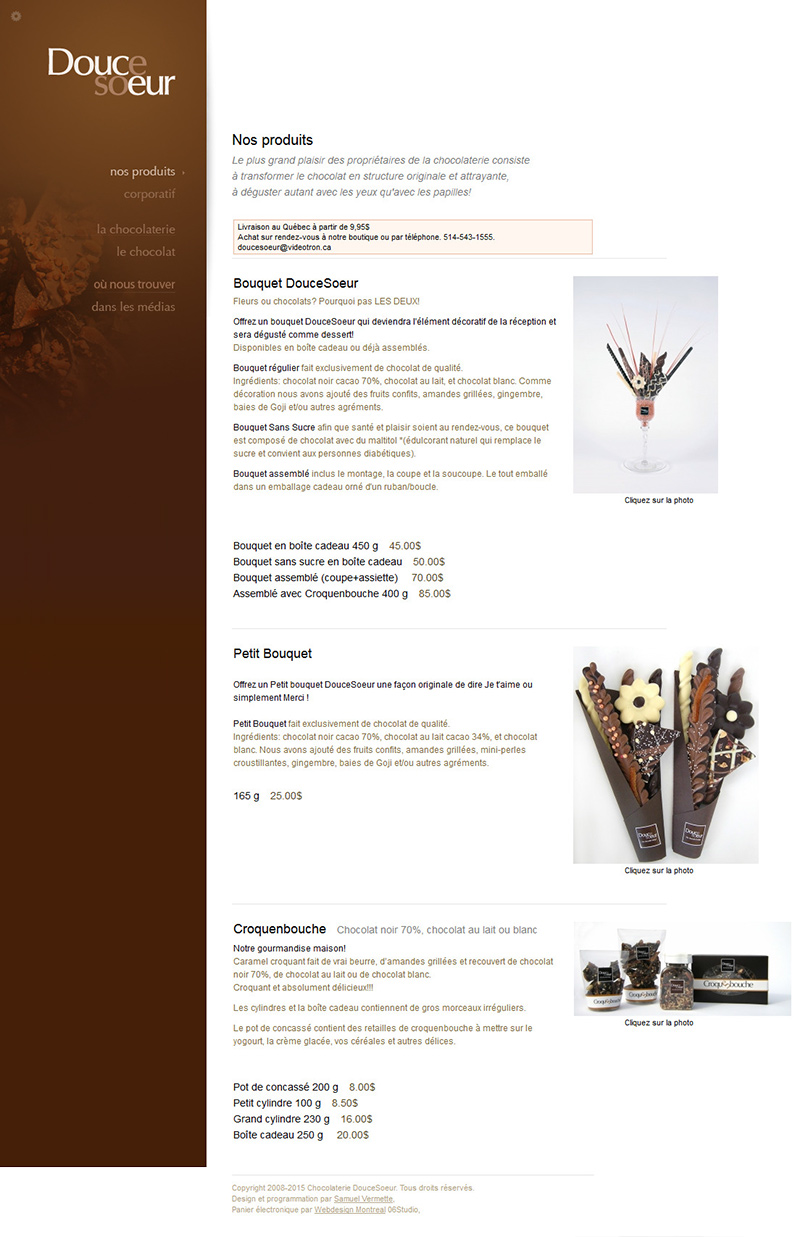 Œuvrant professionnellement dans le domaine depuis 1997, j'ai sans cesse perfectionné mes talents de Web Designer et Développeur PHP pour en arriver à connaître parfaitement toutes les facettes de production d'un produit internet. De la création initiale à la mise en marché finale.